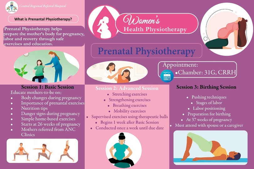 Womenโs Health Physiotherapy was introduced at CRRH in 2023 to support women through pregnancy and the postpartum period โ from preventing and managing common health conditions to promoting overall wellbeing. At the heart of this service is prenantal physiotherapy; a program of safe, guided exercises and education designed to prepare mothers-to-be for pregnancy, labor and reovery after birth.