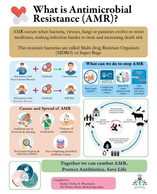 AMR spreads among people, animals, food, and the environment. It is mainly driven by misuse and overuse of antibiotics, self-medication, poor hygiene, and their use in animal farming.